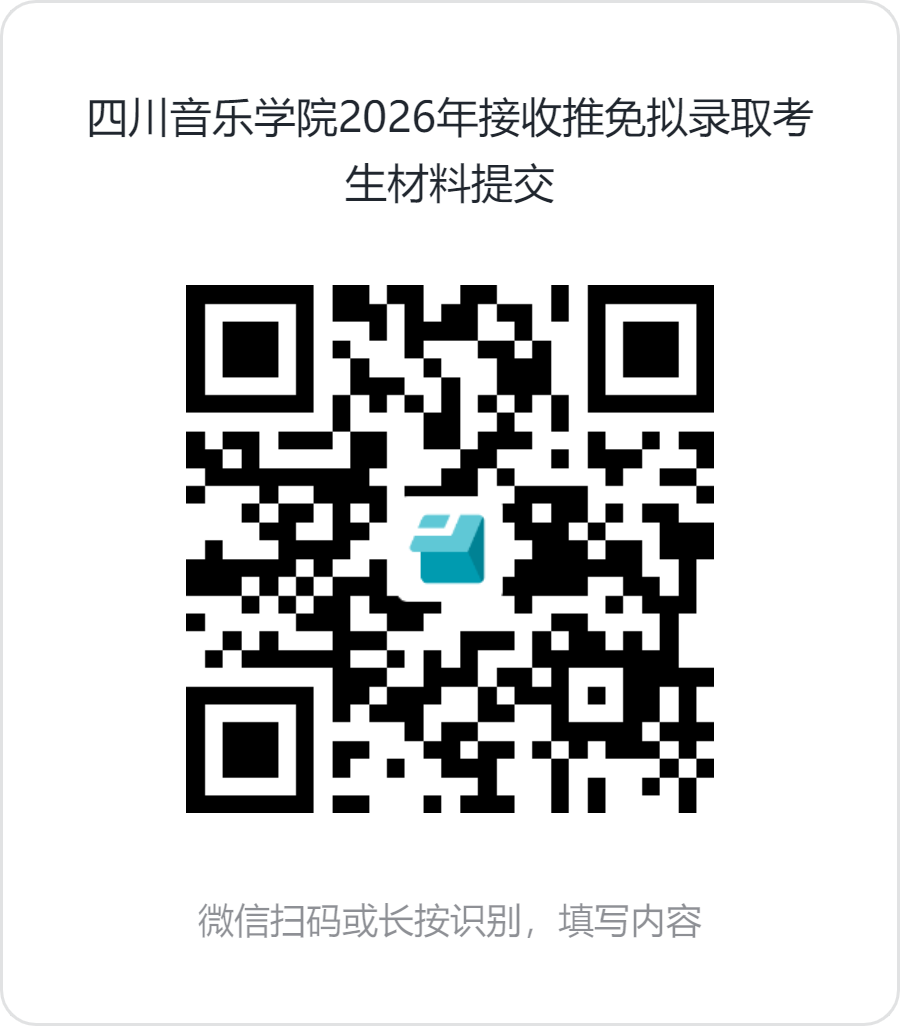 拟录取考生需按要求于2025年10月15日前将《四川音乐学院拟录取硕士研究生现实表现调查表》和《体检表》通过扫描下方二维码提交。现实表现考核未通过或体检不合格者,报学校研究生招生工作领导小组审定,取消其录取资格。已被我校拟录取的推免生,不得再报名参加当年全国统考硕士研究生招生考试,否则录取资格无效。